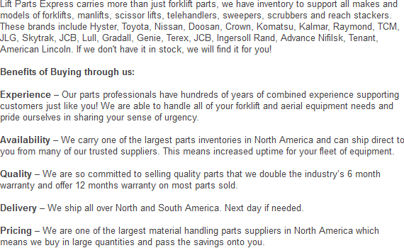 For your entire fleet of lift-trucks, we provide the best prices on all our parts. For a quote on an attachment or part we offer, please get in touch with us at: